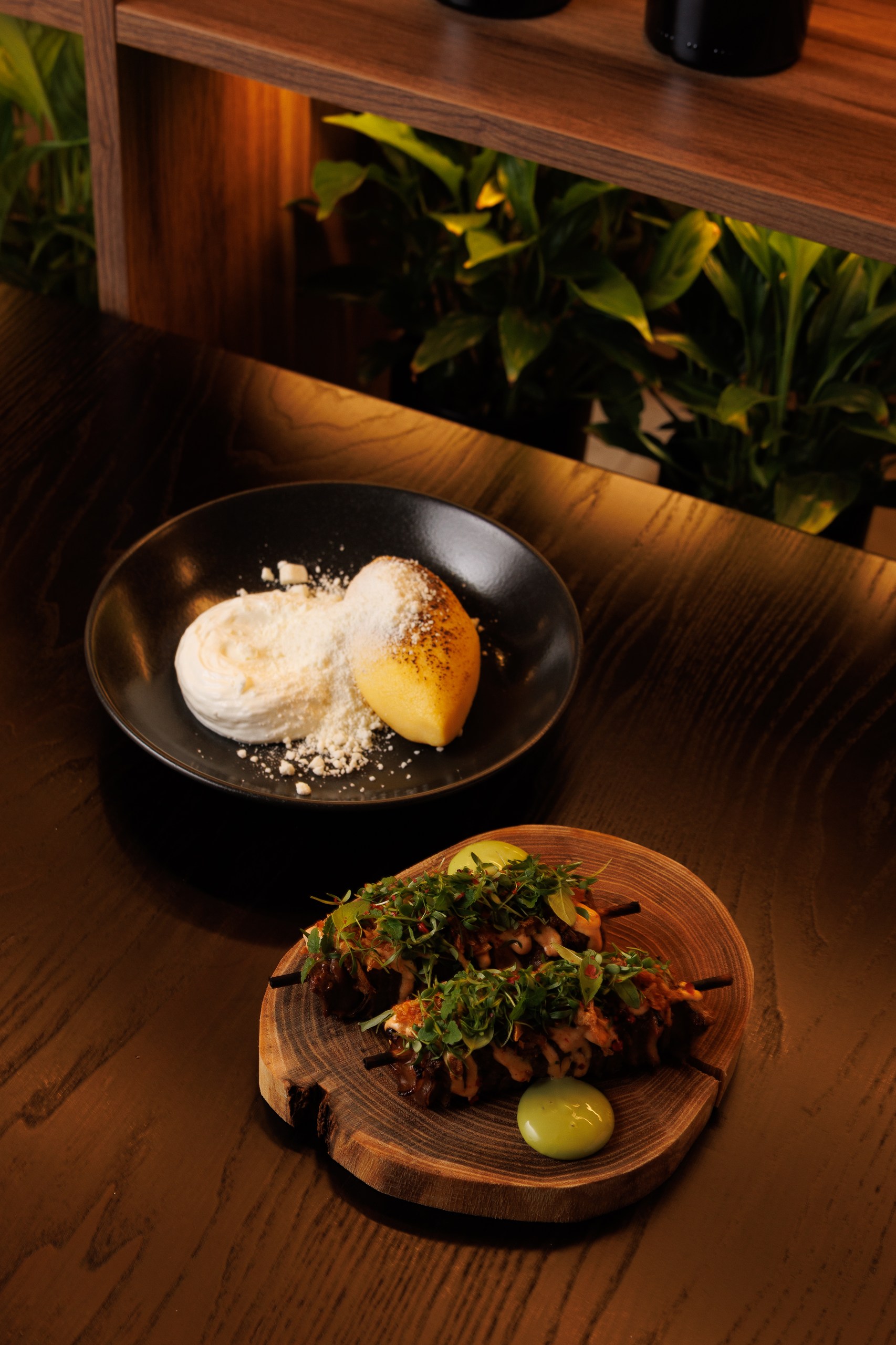 creamy kimchi, avocado chimichurri, ponzu-teriyaki sauce, confit yolk